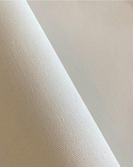 Enfärgad ljusbeige slät väv i 100% polyester. En klassisk, neutral beige som påminner om nyansen av oblekt bomull.