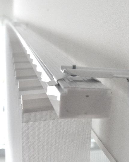Lamellpaketet samlas till sidan där betjäningen sitter.
