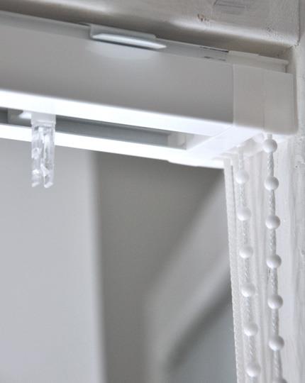 Vitlackerad aluminiumskena för 89 mm lameller med måttanpassning.