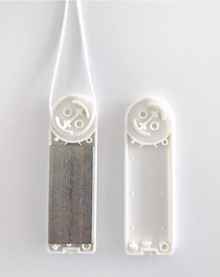 Vikten är öppningsbar så att man kan föra igenom linan.